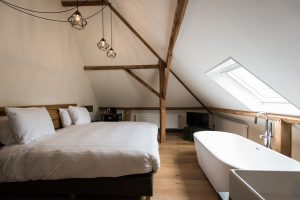 Onze Superior Deluxe kamer is de definitie van ‘even ontspannen in de stad’. De kamer van 30 vierkante meter is voorzien van een kingsize bed van 2 bij 2,1 meter. Het schuine dak en de karakteristieke houten spanten geven deze kamer een unieke uitstraling. Voor de echte ontspanning heeft u in de kamer een vrijstaand ligbad met uitzicht op de historische Morspoort.